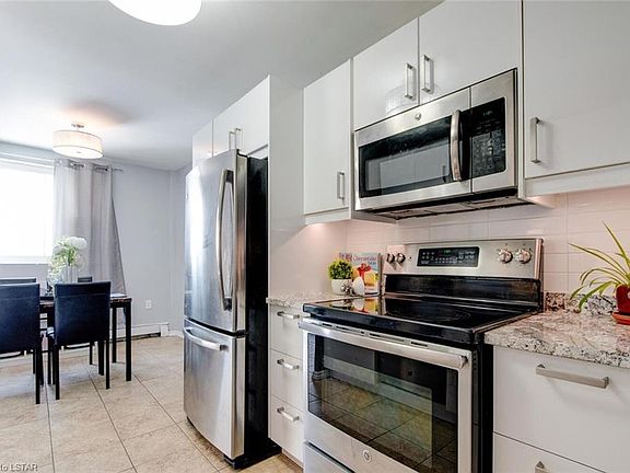 You'll love this fully renovated and move-in condition 2 bedroom condo, overlooking greenspace/playground area. This building abuts single family homes in quiet Westmount. Well-maintained building, walking distance to public and secondary schools, shopping, cineplex theatre, restaurants, hospital, access to Hwy 401/402. Quality Ikea kitchen (2014), granite countertops, subway tile backsplash, newer stainless appliances, updated bathroom. Laminate floors throughout, newer light fixtures, freshly painted in neutral tones. All utilities (heat, hydro, water) included in the condo fee. Lots of parking. This is a beauty! Offers reviewed February 17th @ 3 p.m.