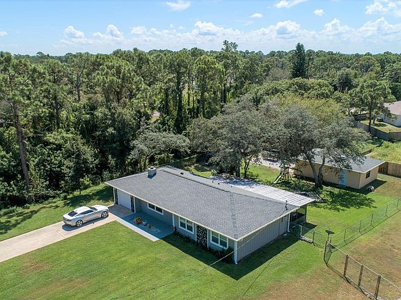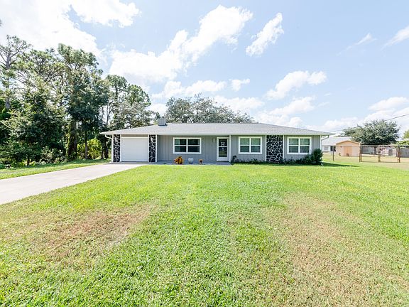 This home rests on nearly a half acre lot with no neighbors on one side! Secluded and shows great pride of ownership. Brand new roof, new exterior paint, newer windows, and the AC is only a year old. The backyard is huge with an additional detached two car garage that has electricity and water. Plus a fire pit area! The interior has an open floor plan with newer floors, partially updated bathrooms, and other small upgrades. The living room has a big over-sized window to provide tons of natural light. The laundry room is spacious! Close to beaches, airports, and Disney. Schedule your showing today!