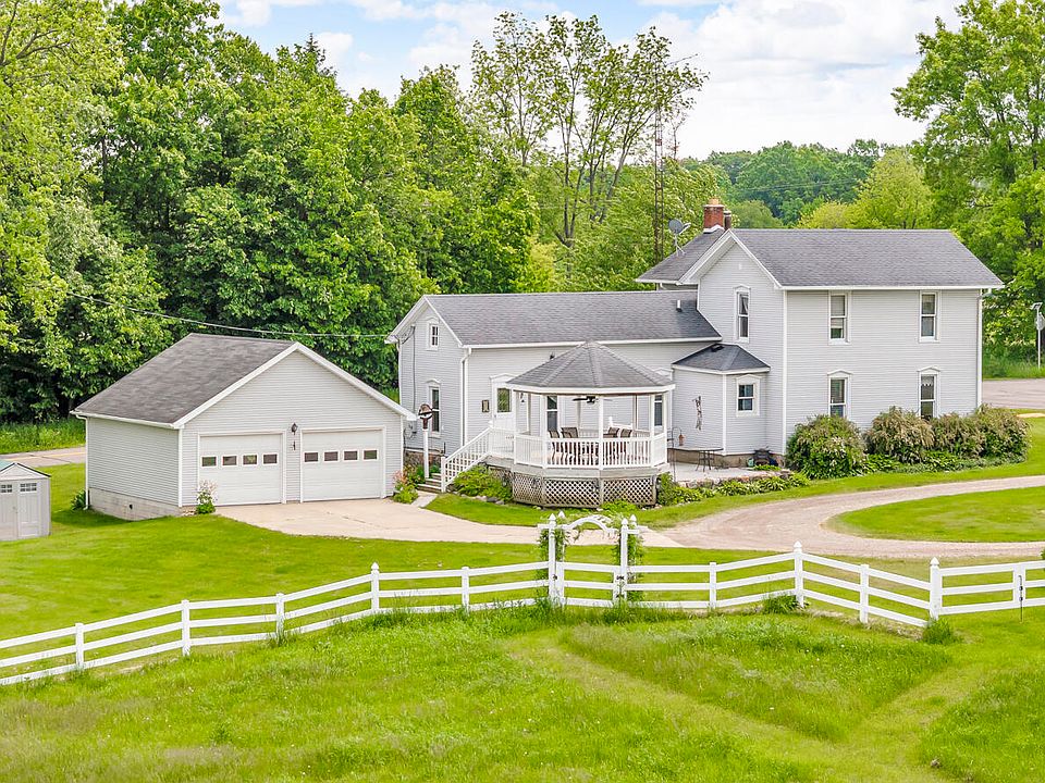 HOBBY FARM NW JACKSON COUNTY only 1.5 miles to I-94, Exit #133 - great for commuters. Peaceful setting surrounds this beautiful 4.5 acre farmette (possibly additional acreage available) - perfect for horses, chickens or other life stock, hobby farming, homesteading or simply enjoying wide-open spaces. Well maintained vinyl sided 1,900 sq. ft. home features 3 BR | 2 BA, w/1 BR & bath on the main flr. Gorgeous custom BR furniture upstairs stays. Large nicely updated eat-in kitchen w/granite countertops. Formal dining rm, charming living rm w/wood burner, wood storage closet AND a parlor/library w/blt-in bookcases. 1st Flr laundry/mud rm (hidden door to basement). Relax in the vinyl/composite gazebo & enjoy views fields. 30x60 pole barn, ''run in'' barn, storage shed & 24x24 garage. Enjoy the best of rural living without sacrificing comfort. FHA/VA/RD terms avail