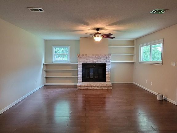 AND THE OWNER IS OFFERING HALF OFF THE FIRST MONTH'S RENT!! Step into a beautifully designed home featuring stunning hardwood flooring and brand-new carpet in the master bedroom. Freshly painted walls create a bright and inviting atmosphere throughout! Solar panels keep your electric bill in the $25 to $70 dollar range! The bathrooms have been tastefully updated, showcasing modern toilets, elegant sinks, stylish cabinets, and contemporary lighting fixtures. The versatile den, which can also serve as a fourth bedroom, boasts a charming brick fireplace, complete with a built-in bookcase and desk perfect for cozy evenings or productive workdays. Plus, you'll love the spacious storage closet, ideal for all your crafts and seasonal decorations! This home also includes a one-car garage, a privacy-fenced yard for your outdoor enjoyment, and a fully equipped kitchen, along with a washer and dryer for your convenience. Lawn service is included in the rent, allowing you to just enjoy your beautiful yard! Don't miss out on this incredible opportunity schedule your tour today! Small pets are accepted with $200 non-refundale pet fee.