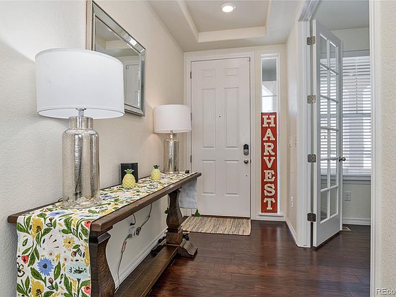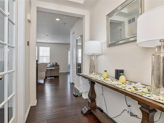 Welcome to this beautiful 2019 Evergreen model with a garden level basement located on a large upper cut-de-sac. Great street appeal! The open concept floor plan is excellent for entertaining. Off the kitchen is a huge covered deck. The kitchen features lots of cabinets, a large island/breakfast bar, a walk-in pantry, and stainless appliances including a gas range. The kitchen opens to a dining area with ample space for a large dining table. The family room can seat many and has gas fireplace. There is also a main floor office/study. The upper level master bedroom features an ensuite master bath with large walk-in closet, two secondary bedrooms, upstairs laundry and a 15 x 11 loft. There is a full garden level basement. This home features smart home security system. Conviently located so you can enjoy all that is closeby: the community park, Trail Winds Park and Open Space with the new Trail Winds Rec Center, ample shopping opportunites at Denver Premium Outlets and The Orchard Town Center. Only ten minutes to Thorncreek Golf Course.