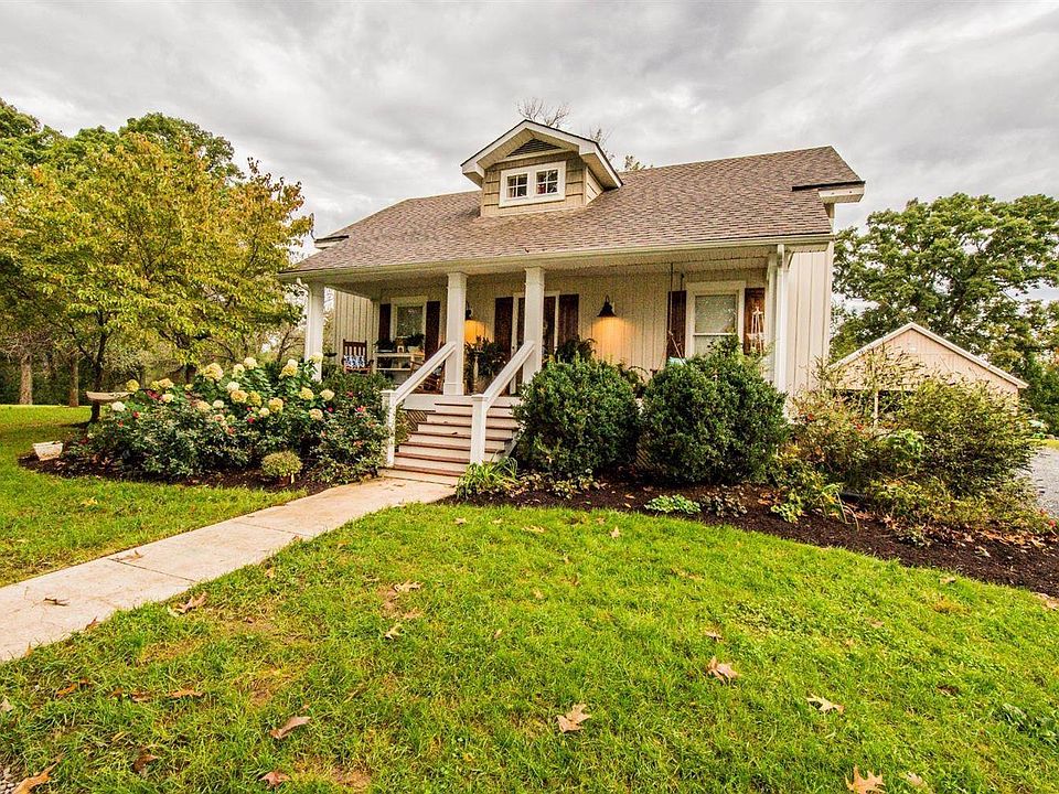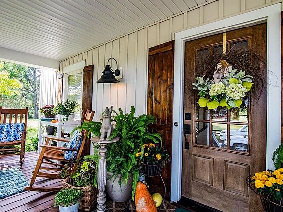 This charming, renovated farmhouse on 3 acres is bound to make you fall in love with country living! Imagine coming home & sitting on the swing or a rocking chair on your beautiful front porch. Or, end the evening in front of the wood-burning fireplace on your back porch or the gas-log fireplace in the living room. This home boasts great attention to detail, with plantation blinds throughout, updated light fixtures in each room, sliding barn wood doors, & beautiful hardwood floors. The kitchen is a dream with white cabinets, granite countertops, ceramic tile backsplash, & self-cleaning double oven. Main-level master suite sits right off the living room, while 2 spacious bedrooms, full bath, & laundry room span the second floor. The basement offers a beautiful family room, guest room, full bath, office space, & storage. Outdoors has barn w/3 stalls, tack room, & hay loft, chicken coop, adorable shed, bike garage, & lovely terrace. 8 additional fenced acres w/pond available for lease