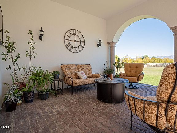 Central fountainOutdoor livingHacienda-style terraceBreathtaking viewsElegant living spaceWisteria-covered pergolas