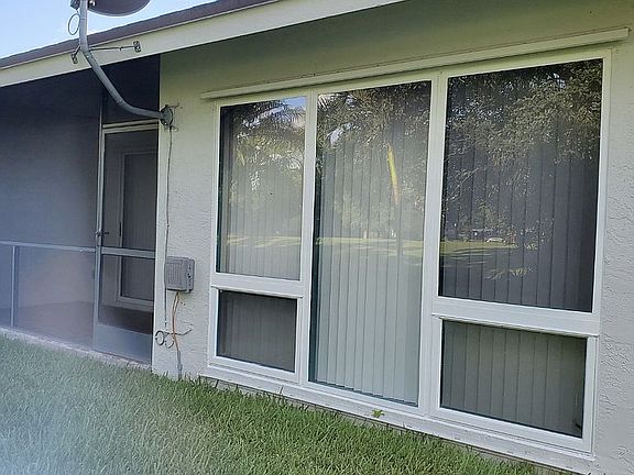 Beautiful and bright 2/2 end unit villa on the golf course. The vaulted ceilings and sky light give a very spacious feel to the home. Carpet in the master bedroom, tiles throughout the remainder of the home. The entire back of the home is glass for you to see trees, green grass, and all that nature offers in South Florida. Enjoy sitting in the screened in patio watching nature and the golfers, sometimes hearing the ting of a golf club hitting the golf ball. There is a side yard and three extra windows because it is an end unit. The backyard is huge; enjoy golf course living! Hurricane Shutters included. There is a community pool, gym, and clubhouse also. Truly beautiful!