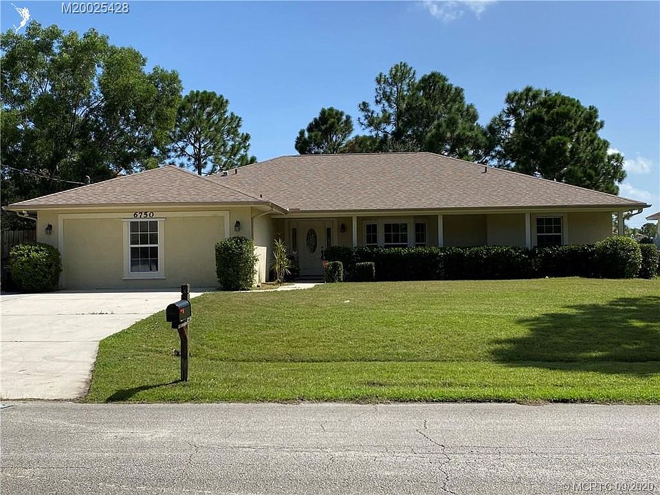 Rare Find! 4 Bedroom 3 Bath CBS Home on a double lot in Port St Lucie with no HOA! Home sits on almost half an acre, giving so many options. Build a large garage or put in your dream pool. Entire yard has privacy fence. Split floor plan with large Master on suite featuring double sinks and his and hers closets. Master has brand new carpet. Remaining house has granite throughout. Home has over 2300 sq ft with vaulted ceilings. Plenty of room for the whole family! Stainless steel appliances. Nice back screened in porch with French Doors from Master, Dining room and Kitchen. Storm shutters that cover entire home. Brand new dishwasher and Hot water heater. Home set up for home security system. Family park within walking distance. Publix shopping center less than 3 miles away. Less than 5 miles from I-95 making it great for any commuter!