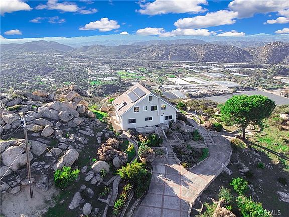 With an eagle-eye view across North San Diego County all the way out to Catalina Island and 360 degrees back along the ridgeline and mountain views, this prime 40+ acre estate is ready to be re-imagined. Whether the existing hilltop residence is updated to an exclusive residence or the next owner takes advantage of the A70 zoning just south of Temecula’s wine country, the opportunities are almost as endless as the views. Imagine the events, whether intimate or grand, that could be hosted at each glorious sunset. Nestled at the end of a private road but with convenient access to the 15 freeway, you’ll feel instantly far away from it all while within minutes of all major amenities. Ready for a thoughtful renovation, the careful details that went into the customization of this home will continue to serve it well, including a 2.8KW photovoltaic array and a Solahart solar water heater, a roof pitch and direction designed to optimize insulation, and a raised foundation with a generous crawlspace for convenient access to plumbing etc. The land, which was maintained using organic farming techniques (no pesticide or compost contaminants), has boasted orchards and vineyards and sits ripe to bloom again, with numerous water lines to all cleared areas of the property. The soil is sandy loam in composition, drains well and is excellent for horticulture. Extensive terracing and stone masonry was cultivated over the years and affords thoughtful potential venue spaces and ample parking. A 24x24 shed below the house boasts a 7’ roll up door and a second 36” door to accommodate a tractor and other equipment. Unparalleled opportunity awaits - it's time to make your move.