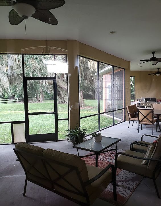 Elegant 4 bedroom 3 and a half bath with office on over an acre. As you walk through the stately front door you are immediately greeted by luxury ceramic tile that leads to upgraded wood laminate flooring and a tremendous view of the private acreage. You'll notice the tall ceilings accompany you wherever you go in this home. Tray ceiling, Granite countertops, gas stove, dual convection ovens with food warmers, water refilling station above the stove and a fully equipped island are sure to impress even the most discerning chef. Through the kitchen you will find the large laundry room and over sized garage to fit whatever you may need. The master suite has tray ceilings, his and hers walk in closets, and access to the lanai. Within the master bathroom you will find ceramic tile flooring, dual sinks and a large roman shower with multiple shower heads. The second bedroom has volume ceilings and a walk in closet with a Jack and Jill bathroom leading to the third bedroom. In the third bedroom you will find the volume ceilings and dual closets! The third bathroom holds granite counters, tiled roman shower and upgraded vanity. Upstairs is the fourth bedroom that has been converted into a media room complete with its own surround sound, projector, half bath and walk in closet. Three zoned ac keeps you comfortable in all rooms. The large screened in lanai has been plumbed for a summer kitchen and looks out onto your fully fenced in yard. This home is conveniently located equidistant from Ocala and The Villages