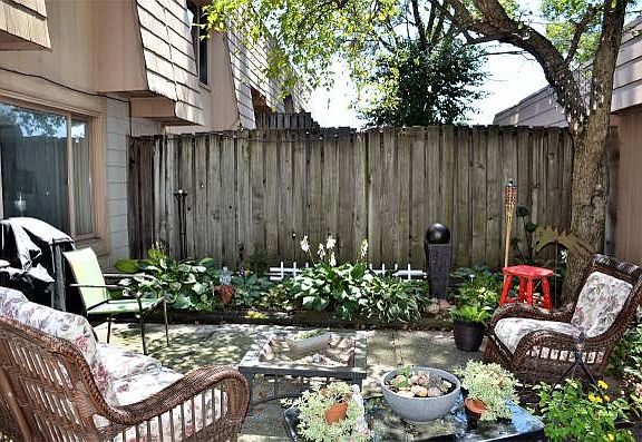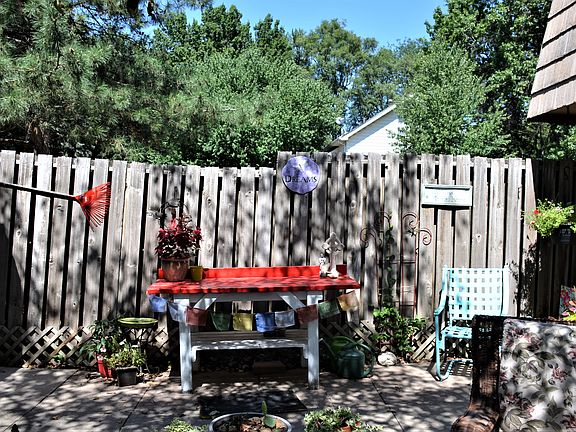As you enter this town home with you walk through a beautiful private garden patio area that has unique hostas and other perennials. Owners are including a stone fountain that blends with the lush growing plants. This hard to find a 3 BR, 2 full bath and 1/2 bath, 2 car garage and an end unit with private entrance. This spacious 2 story, offers an open kitchen (w/all appliances) into the dining room that opens onto back patio with sliders. The large living room boasts a beautiful wall to celing stone, wood burning fire place. Other features include 16-foot open ceiling loft style to the 2nd floor. A spacious master suite with walk-in closet and on-suite bathroom with jetted tub has its own balcony opening to the private back area. Two additional bedrooms with excellent closet space and another full bathroom are on the 2nd floor. This townhome is located close to Colby Park, walking trails and near the town homes community pool. And being part of an HOA there is NO lawn care or snow removal. IT is minutes from downtown or the western suburbs--close to shopping, schools, restaurants and 235 Freeway. What more could you ask for? This is a must see!