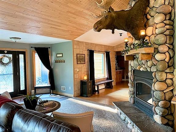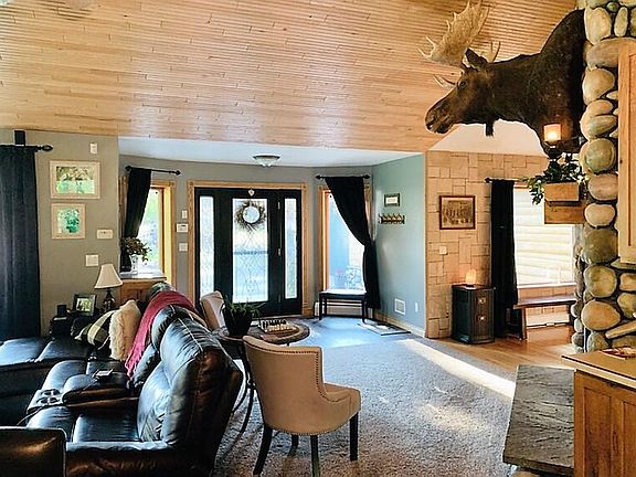 Executive style home in a picturesque setting. Gorgeous hand hewed Cedar logs with Cobblestone accents give this home it's charm. Custom built with 5-6 bedrooms and 4 baths and situated on 6.2 acres on the Thunder Bay River. If you have always wanted a log home, then this is the one for you. The house has been remodeled from top to bottom. Some of the features include upscale Bertch cabinets, master suite with stone surrounding the jetted tub with an amazing view of the river, beautiful wood floors, amazing wood work, open concept w/vaulted ceilings, and two fireplaces. Walk-out from huge family room in lower level. Decks off the kitchen/dining area and the main level office. Bonus storage above the pole barn. Sellers just had the house, pole barn and decks stained and they look amazing!