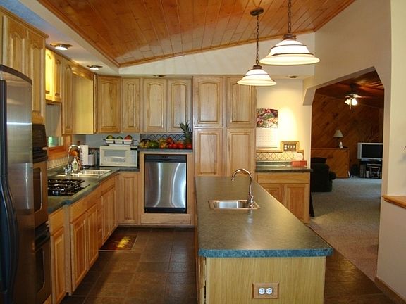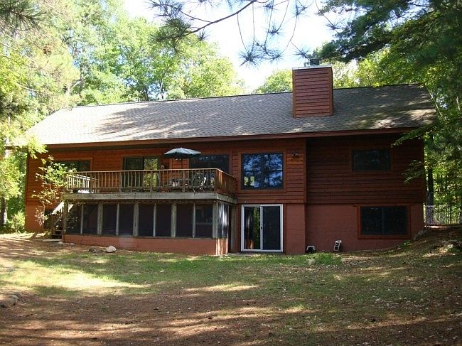 Privately situated on 1.5 wooded acres, this home offers 200 feet of gradual frontage on 11 acre Estelle Lake. The main level features an impressive kitchen with hickory cabinetry, lake views from the spacious living & dining rooms, 3 bedrooms, a full bath & vaulted wood ceilings. The partially finished lower level includes a family room with fireplace, guest room, 3/4 bath & rec room. A lakeside deck, screen porch, covered front deck & home warranty complete the package!