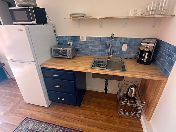 The kitchenette includes a refrigerator, sink, countertop, toaster oven, and electric burner everything you need for independent living. I've curated the entire space to be comfortable and welcoming.