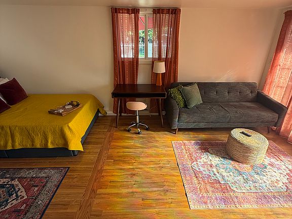The room is fully furnished and move-in ready. It gets beautiful natural light and includes a mini split for both heating and air conditioning, a comfortable full-size bed, a cozy sitting area, and a nicely sized closet with plenty of storage.