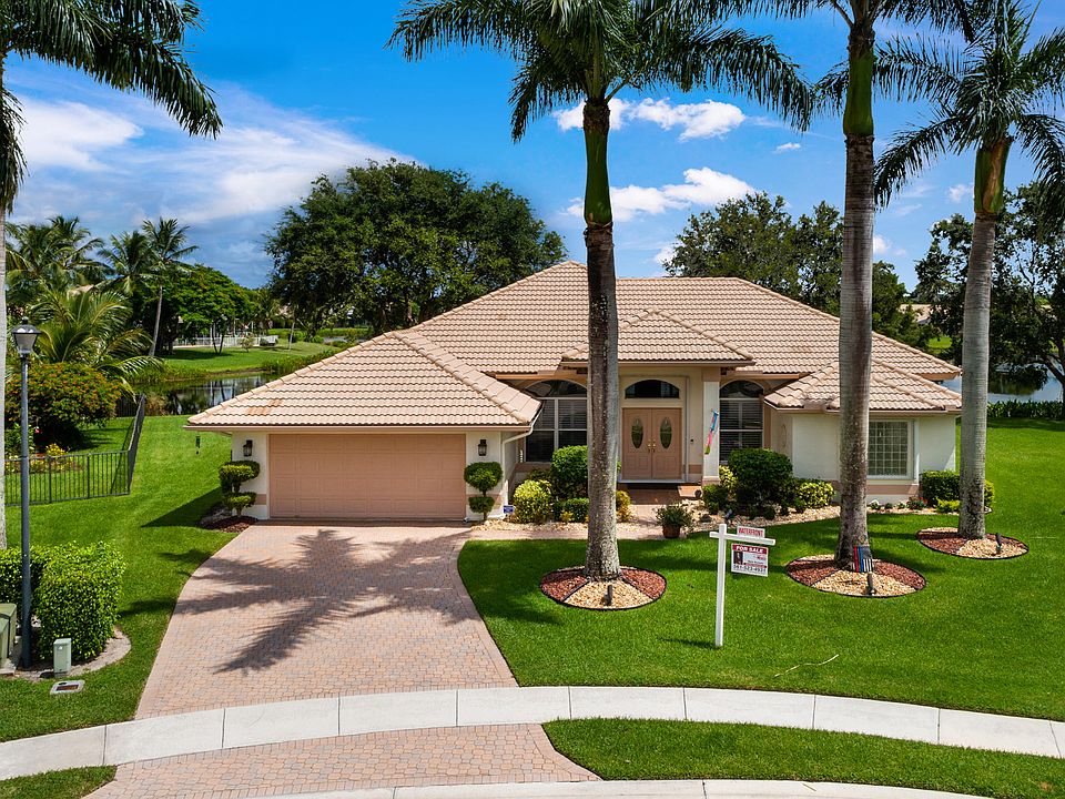 Welcome Home!! That is what you will be thinking the moment you pull into the brick paver, driveway of this large cul de sac lot! This 5 bed 3 bath lake front home boasts 18'' travertine tile throughout the living area! Plantation shutters! Granite kitchen w 42'' cabinets and under-mount lighting! Crown Molding in Kitchen, Family room, Dining room, Living room, Office, & Master Bedroom! New A/C Dec. 2019! Freshly painted exterior! Enjoy Happy Hour & more, on the large cool deck screened in patio overlooking the serene lake. This large, open split bedroom, Palm Beach floorplan is one of the most desired models in Lakeview Estates. An all age community with low HOA fees, located in one of the Top Rated School Districts in Palm Beach Co! What are you waiting for? Make this home yours today!