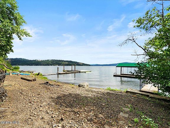 LISTING COMING OFF THE MARKET ON 10/4. Will be relisted in Spring for 1.5M after completion of many improvements. Available to show thru the Fall & Winter. Rockford Bay Waterfront! Tremendous Lake CDA views from this paved, gated, and large (.56 Acres) lot with 75' of deep-water frontage on the tip of Rockford Bay just before Windy Bay (Rockford point)! Private & protected 3 bedrooms, 2.5 Baths, 2,102SF cabin with large (24 X 36) garage / shop and nice dock with covered slip and beautiful beach! Spectacular outdoor living with huge deck, covered BBQ porch and covered dining area. Brand new water filtration system, new drain field and several other improvements in process.