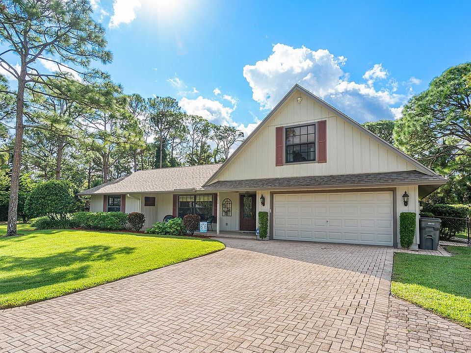 Incredible opportunity to own a 4/3 + loft home w/ a pool on one of the best streets in Palm Beach County Estates! Paved road! Open concept floor plan. Hardwood floors. Kitchen has been remodeled w/ French white raised panel cabinetry, granite counter tops, back splash & under cabinet lighting. Peninsula island overlooks two floor to ceiling picture windows. Corner fireplace w/ stone hearth is perfectly placed in family room. Split bedroom floor plan is ideal w/ 1st floor master bedroom w/ en-suite bath featuring dual sinks, whirlpool tub, large separate shower & walk-in closet. Also on the 1st floor is the 4th bedroom which makes an excellent guest wing or mother-in-law quarters w/ adjacent bath & separate entrance.