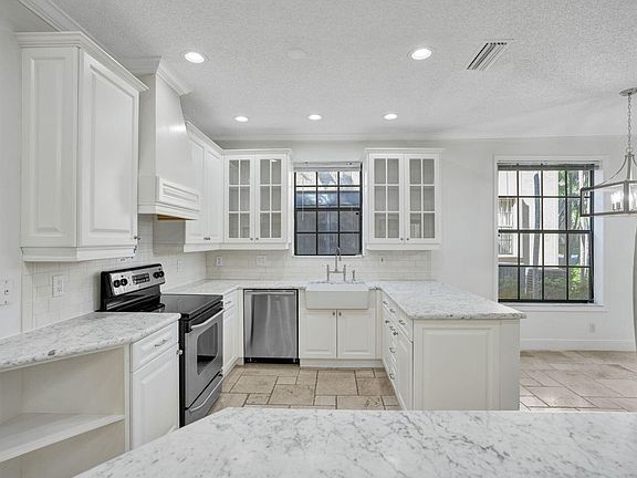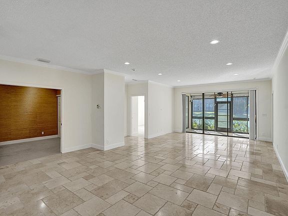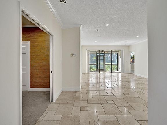 Stunning fully renovated ground-floor corner/end unit with an attached garage in the gated non-membership community of Montego Bay at Boca Pointe. Located right in the heart of Boca Raton and zoned for incredible A-rated schools! Triple split floor plan with 3 generously sized bedrooms and 2 updated bathrooms. Expansive living area with views of the screened-in patio/garden. Chef's kitchen with eat-in dining, custom white cabinets, stainless steel appliances, and luxurious white marble countertops. The living spaces exude elegance with French-cut tumbled marble flooring and brand new LED high-hat lighting creates a light, bright, and cheery living environment. Plenty of storage with a walk-in custom closet in the primary bedroom. Full-size interior laundry room and a one-car garage with an additional refrigerator. Montego Bay residents enjoy exclusive access to a private pool, while the adjacent optional country club offers resort-style amenities including an 18-hole golf course, 15 tennis courts, 4 pickleball courts, and 2 restaurants. Perfectly positioned near beaches, dining, shopping, and major highways, this home epitomizes Florida living at its finest.
