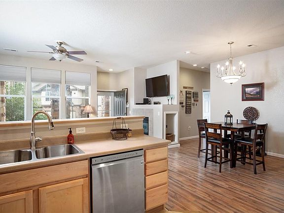 Beautiful condo in highly desirable Saddle Rock community and Cherry Creek School District! Open floor plan living with tons of storage throughout. Large kitchen with extra tall cabinets and great counter top space, including a snack bar with extra seating. Beautiful flooring throughout. Two large bedrooms and two full baths with a master en-suite bath. Two car tandem garage with built in shelving. Community offers a fantastic outdoor pool and playground. Easy access to E-470, Southlands Mall and DIA. Hurry, this one will go quick!