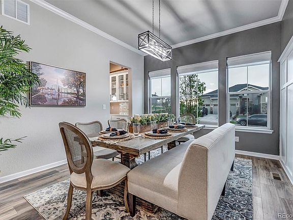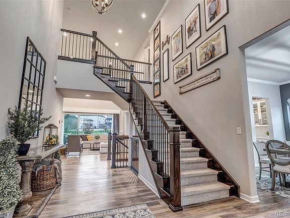 Welcome home to this beauty with stunning upgrades throughout! As you walk in you are greeted with a grand entry and beautiful open staircase with expansive ceilings that allow for natural light from the open floor plan and the large wall of sliding doors. To your right you'll find the beautifully designed dining room that passes through a butler's pantry to the kitchen. As you travel to the great room you will find two story ceilings with a large area for all of your entertaining desires. Next you will enter into your very own chef's kitchen with high end appliances, designer lighting, an oversized island with spacious seating, and a breakfast nook. The kitchen also showcases lots of cabinets, a large walk-in pantry, a gas cooktop, trash compactor, built in microwave and a second slider that opens to the covered deck.