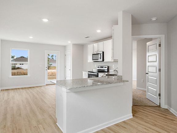 New construction home in Liberty just North of downtown Panama City FL. This Celeste floor plan is located on lot 62 at 6754 Atkins Road. Upon entering you immediately notice the bright entry way afforded by the prairie door. This 3-bedroom 2 bath, 1403 square foot home is an open floorplan. The primary bedroom and bathroom are located off the entry at the front of the home. The primary bathroom has double sink vanity, large shower, and a huge closet. Proceed down the entry hallway passing the laundry area as you enter into the kitchen, dining, and family area. The kitchen offers an island with space for bar seating. On the opposite side of the home from the primary bedroom upfront, there are two spacious secondary bedrooms separated by another bathroom making this home a true split floorplan.