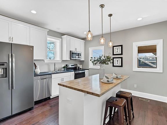 U City living beautifully renovated 1900+ sq ft home. Welcoming open floor plan is accented with engineered h/w flooring. Family room has w/b fireplace, lead glass windows & bay window. Dining area with arch doorways & opens to both family room & kitchen area which is perfect for everyday living or entertaining. White/bright kitchen has 42" cabinets, black s/s appl, center island with butcher block counter, designer lighting & large w/i pantry. Massive MFL/mud room-extra cabinets & opens to quaint covered porch. Two car detached garage. Updated Powder room on main level with designer tile. Upstairs are three spacious bedrooms complete with all new carpeting. The master bedroom suite with attached luxury master bath with adult height dual vanity & custom shower with white subway tile-plus huge w/i closet. Two additional bedrooms also offer large W/I closets & a completely updated bath to share. Vinyl windows 2019/HVAC & HWH 2018/UPDATED ELECTRIC & PLUMBING/NEW ROOF GARAGE 2020. WOW.