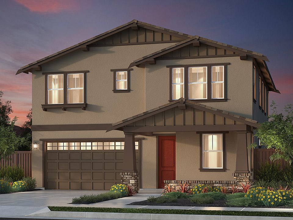 This beautiful move-in ready home includes a downstairs bedroom and bath, striking 10-ft. first-floor ceilings, and 9-ft. second-floor ceilings. The chef-inspired kitchen features quartz countertops, range backsplash, a large island, maple cabinets, a walk-in pantry, a cast iron sink, and stainless steel appliances, including a gas cooktop with 5 burners, smart wall combination oven with touchscreen, and tall tub dishwasher. An upstairs loft can be used for crafts, games or yoga. The master bedroom features his and hers walk-in closets, and the master bath boasts quartz countertops, a dual-sink vanity, and a large designer mirror. Additional features include upgraded Sherwin-Williams® interior paint, box traditional stair railings throughout, Moen® WaterSense® bath fixtures, Generation Lighting fixtures, Kwikset® SmartKey® entry door hardware, a programmable Carrier® Côr® Wi-Fi® smart thermostat, recessed can lighting throughout, and a 16 SEER A/C. Schedule a tour today.