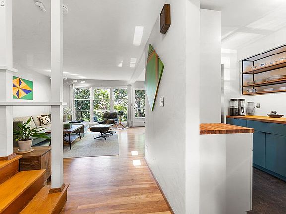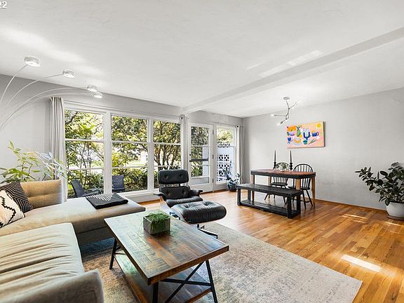 Stunning Mid-Century Townhome steps to Rose City Park - This beautiful 2 bed, 1 bath unit is move-in ready! Open floor plan w/updated kitchen including SS appliances, BI-Dishwasher & Butcher block Countertops. Watch the sun dance off the hardwood floors all day with ample natural light. Two beds up, one w/built-in bookshelves & W/D. Enjoy time on the private patio & strolls through the beautiful grounds. HOA covers W/S/G, heat, landscaping, ext. maint & mgmt. Electricity avg.'s $20/MO!