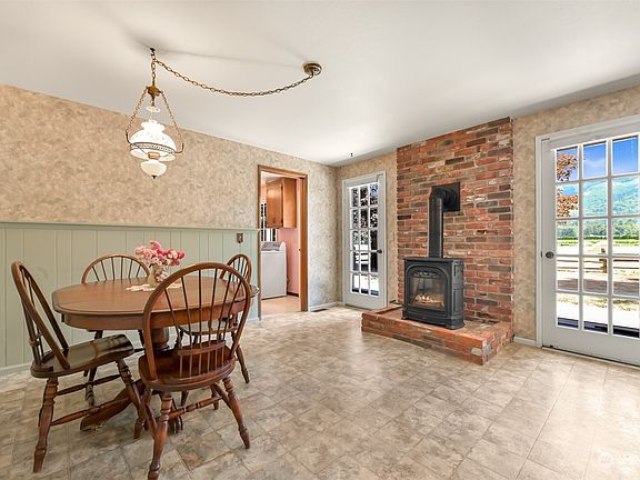 Peaceful serenity awaits you in this country home featuring:3 beds/3 baths on a single level with a large bright kitchen perfect for entertaining includes a freestanding fireplace,useful layout,bath off the master,air conditioning,newer generator,all in a gorgeous private setting with views of the foothills and surrounded by certified organic pasture,1 stall horse barn with hay storage~but could be expanded to 3.Electric fenced pasture for riding,outbuilding for gardening tools,property level and well-draining~perfect for horses/gardening/hobbies.Stately driveway,ample parking,room for RV,mature landscape,large patio for backyard barbecues while enjoying the view,quiet country feel yet 20 minutes to Bellingham.No flood zone!