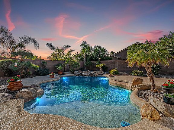 Absolutely stunning Seville executive home with 4 bedrooms and 3 full bathrooms. This home is IMMACULATE and features vaulted ceilings, TONS of beautiful light and bright windows, upgraded travertine floors, BRAND NEW neutral paint throughout, granite counters, BRAND NEW stainless steel appliances, including; a gas oven/range and refrigerator! This home has one of the most popular floor plans in Seville with over 2700 sq feet, master bedroom split, ensuite bedroom with its own bathroom, HUGE kitchen and family room, perfect for entertaining! The owner's suite is GORGEOUS and is your private getaway! The backyard is STUNNING with a large covered patio, sparkling blue pool and spa! The home is situated on an oversized lot in a cul de sac with a 3 car garage. You will love living in the community of Seville with lots of common areas, playgrounds, water slides, Olympic pool, fitness center, and restaurant. Check out the Documents tab for more information!