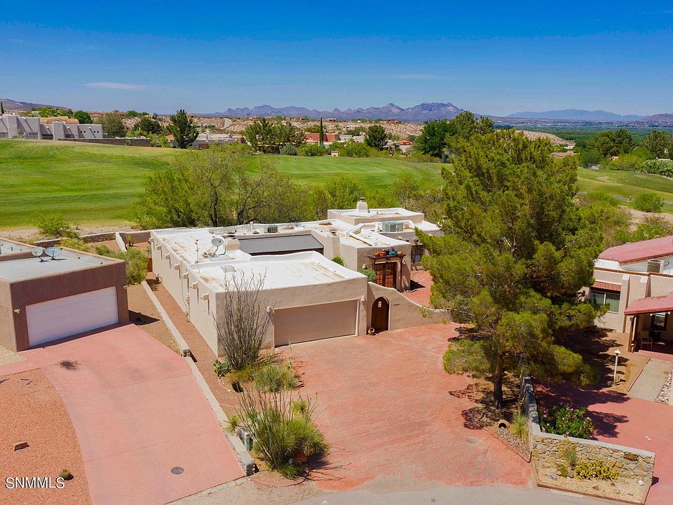 A taste of Santa Fe is waiting for you! Located in desirable Picacho Hills, backing up to the golf course and featuring gorgeous Organ Mountain & Mesilla Valley views. This beauty is truly a one-of-a-kind gem! Offering 3 bedrooms, 1 & 3/4 baths, 2 living & 2 dining areas. Great southwest details include 4 kiva-style fireplaces, bancos, saltillo tile throughout, ceiling treatment featuring beams & vigas in every room. Oversized 2-car garage with extra storage space. Comfortable refrigerated air. Charming red brick courtyard and wrap around patio offer the perfect setting for your outdoor entertaining. Come home to 6754 Via Campestre today!