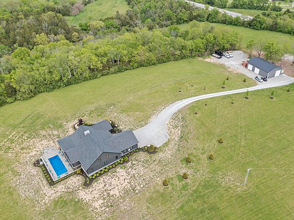 Stunning and private! This bluegrass property spans 13.9 acres and is ideally located 15 minutes from Lexington, and minutes to Richmond, and Winchester. It boasts a custom, designer chef's kitchen with a gas range, double oven, double refrigerator, and a massive granite island that seats 10+ people. The open concept features a gorgeous great room with shiplap ceilings, exposed wood beams and a floor to ceiling stone fireplace. A large dining room and separate bonus room is also on the main floor. It includes 3 bedrooms on the main level plus up to 5 additonal bedrooms, 8 bathrooms, and dual laundry rooms. Just off the garage is an in-law suite, or 2nd office area, with its own full bath. The home features a heated, saltwater pool in a custom stone courtyard, hot tub, and picturesque farm views from every window. Want more? Additional highlights include a main floor garage with an EV charger, an extra heated garage, shiplap accents, and hardwood floors. It also benefits from geothermal heating. Included with the property is your own separate shop with 2400 square feet of space with a concrete floor. Additional 8+acres available under MLS25000480.