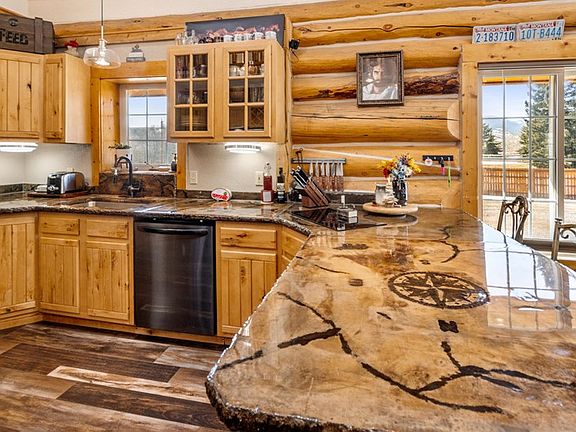 A Unique Log Home! Custom Log home with incredible views of the Beartooth Mountains and Red Lodge Ski Mountain out your back door. Moose, bears, and plenty of deer pass through! 4377 Sq. Ft., 5 bedrooms, 4 baths on 1.037 ac. Concrete counter tops, engineered wood floors, infloor heat, and many upgrades. The downstairs living area has its own entrance, kitchen and laundry with 2 bedrooms. and would be great for Mother-in-law, guests or short-term rental. 1176 Sq. Ft finished shop w 220., carport, and deck with views!. Sun room off the Main Bedroom upstairs Off the back deck, Hot Tub, Rock outdoor bar, and firepit. This home has endless possibilities, and with just an hr drive either way to Billings or Yellowstone and the Beartooth. Come see to appreciate. No CCR's