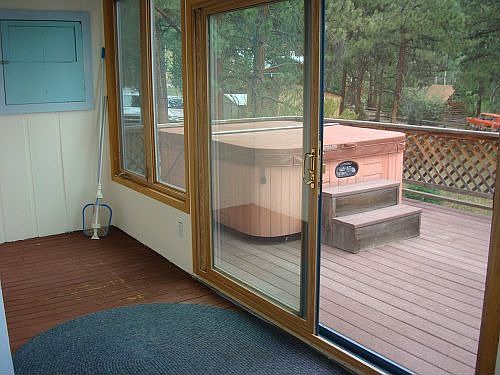 2 Gentle Acres Located South of downtown Evergreen near N. Turkey Creek Very close to Marshdale Elementary and a private Montessori school Beautiful acreage Mature Trees Views of Local and Snowcapped Mountains 3 Bedrooms 2 Baths 2400 Square Feet Study on each level Family Room with built in Bookshelves Living Room with Rock Fireplace Covered Porch Upper View Deck with HOT TUB Sun Room Charming Knotty Pine Accents New Windows New Exterior Paint Southwest Exposure Efficient Hot Water Baseboard Heat