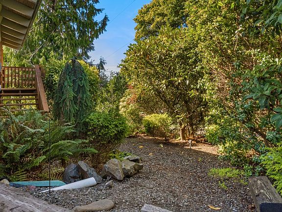 Updated Distinctive Custom Home situated on a remarkable .50 acre private enclave, with room for a shop/with living quarters or possibilities for an ADU. New roof, great interior light from the open living concept and wall of windows off the wraparound front entry deck. Attractive wood built-ins and cabinetry. Private gardens and deck off primary bedroom with private bathroom. Lower family room with full bath, steam shower and heated floors. Laundry room w/wash sink. Steam sauna located in plus room off family room w/ door to outside - could be used as bedroom, gym, office, etc. City water and sewer. Home sits partially surrounded by trees and greenery, peek of a bay view and lovely front gardens, water feature, surrounding natural growth. Abundant parking for boats, RV and vehicles, and still room to grow. Home is virtually hidden from street view, special tucked away location with the large flat area below upper home location. Seller has used lower family room level as their primary bedroom with 4th bedroom as their oversized closet.