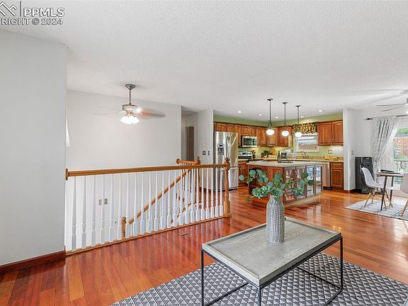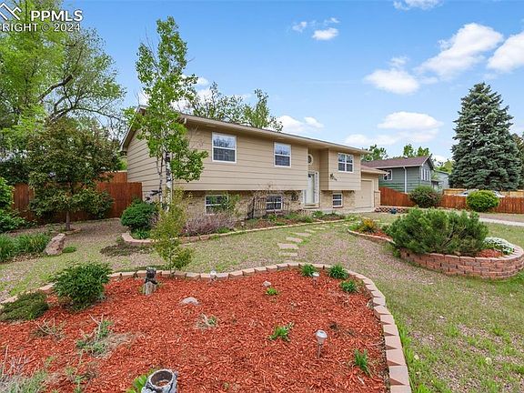 Discover this amazing 5-bedroom, 3-bathroom home ideally located near Ft Carson, Widefield Recreation, with easy access to I-25 and walking distance to Community Parks! Enjoy the cedar-fenced backyard and spacious deck for outdoor dining and entertainment while exemplifying a private oasis with mature trees, landscape and beautiful Lilacs! The kitchen features Diamond brand Whiskey Black Glaze finish on stunning cabinetry, under cabinet lighting, and a lazy susan!! The large island includes a bookcase, adjustable storage shelving, and easy-close pullout drawers, complemented by glass display shelves and puck lighting. Custom cut glass front cabinet inserts and dimmer-controlled pendant lights add a touch of elegance to this custom-designed space. SO much space in this home with an eat in option at the granite counter or a formal dining table with the open concept at your one of two living rooms! Explore downstairs your HUGE second family room perfect for a game room or study! All new carpet throughout in beautifully kept condition!! Schedule your showing today!
