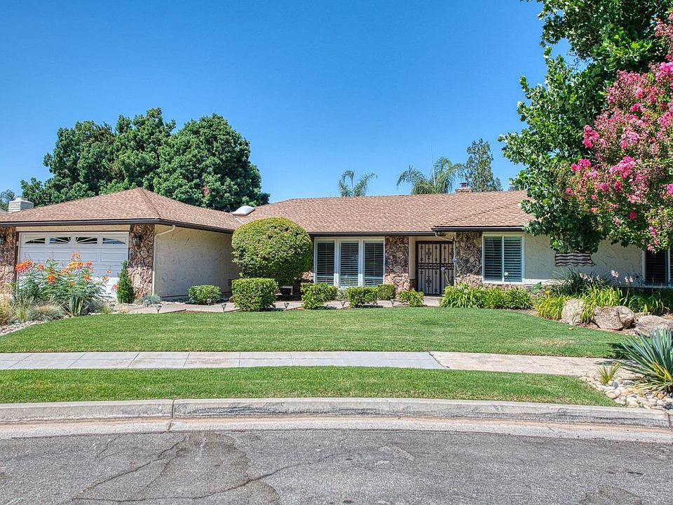 Offer Deadline is Mon 7/24 at Noon! This charming 4BD/2.5BA NW Fresno home is in an established -/+ 10,500 sqft cul-de-sac lot & located mins away from shopping, dining, golf & other amenities. Enter thru the double door entry & into the decorative tile in the foyer, you are welcomed by to 2 living areas not offered in today's new homes. The Kitchen features a center island, gorgeous granite counters, an electric cooktop, a breakfast bar, stainless steel appliances & wood cabinets. Retire to the Primary Suite & be greeted by high vaulted ceiling leading into the primary bath w/ a lg shower, dual sinks & lg walk-in closet. This home features a formal dining room & cozy fireplace great for entertaining! There are plantation shutters in certain areas, water softener, R19 Insulation brings it to R-38 & Solar is owned. Enjoy this summer under the covered patios that wraps around the property offering ample space for storage or potential RV, or cool off in sparkling pool or spa!