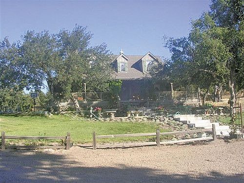 Custom Built Country home with Guest house on Five Oak covered acres, completely fenced with all underground utilities. Cathedral ceiling, living room open to loft with dormer windows. Entire downstairs oak wood flooring and tile. Large covered porch around entire house. Many grass areas all on timed sprinkler systems. One Large grass area with back stop for baseball and space for Golf, croquet or what ever. Two custom concrete patios,front and side,with concrete walks around entire house.Shop with carport and electricity,well house,working out-house.Fruit orchard with variety of trees. Many different varieties of grapes and berries. Oversized garage with shop area and 3/4 bath with laundry hook-ups. Five room guest quarters with deck over garage with full kitchen that includes refrigerator stove and microwave. Has 3/4 bath and wall furnace and evaporator cooler. Guest quarters has vaulted ceilings in knotty pine .