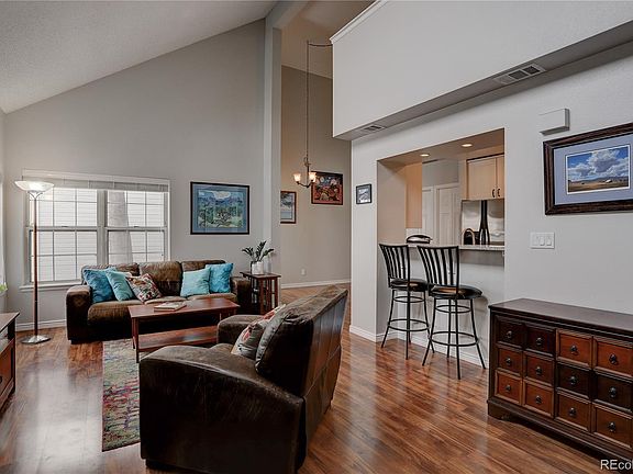 Don't miss this beautiful home in the best location! This 2 bedroom 2 bathroom home is in the perfect location - easy to get to the Tech Center, Light Rail, or I-25 for commuting while also being in the Cherry Creek School District and a short walk to Willow Springs Open Space and miles of trails. Walking in the front door, you'll love the 2 story vaulted ceilings, warm, laminate wood floors, wood burning fireplace, and open living space. The kitchen is complete with modern, white cabinetry, granite countertops, stainless steel appliances, and a farmhouse sink. Off of the kitchen, the dining area is open to the living room for a wonderful entertaining space. On the main floor, you'll find the master bedroom with a large walk-in closet and en-suite master bathroom, complete with a soaking tub. Upstairs, you'll be greeted by a wonderful loft space, great for an office area. You'll also find a full bathroom and huge bedroom with a private balcony and it's own separate entrance - great for possible rental income! Move in to this home with peace of mind - new, high-efficiency furnace, air conditioner, carpet, and dishwasher were installed in the last 6 months. A private, covered parking spot, community pool and clubhouse, make this your perfect home!