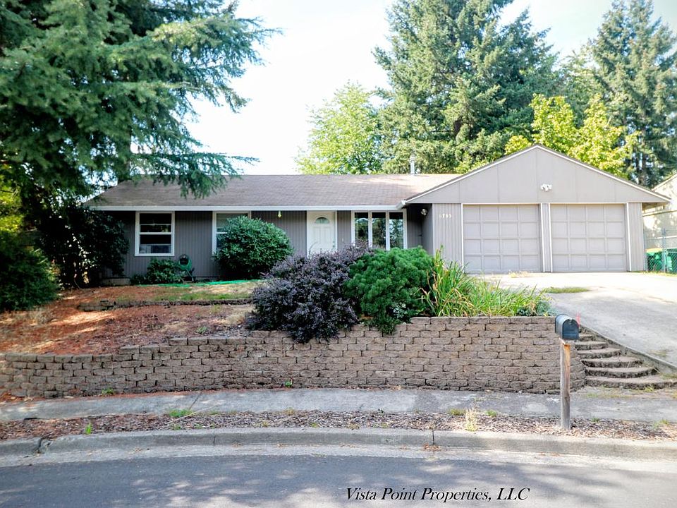 Cozy 3 bed/ 2 bath ranch style home tucked away on a quiet cul-de-sac in desirable Highland neighborhood. Updated kitchen with granite countertops and elegant backsplash tiles. Large family room with wood fireplace. Master bedroom with remodeled full bathroom. Updated guest bathroom with tub and tubular skylight for natural light. Laundry closet with washer and dryer. Large 2-car garage with shelves for storage. Private backyard surrounded by trees, large patio; fully fenced. Pet: over 1-year old; 1 cat or 1 dog under 30-lb with pet rent and pet deposit. Yard Care: Yard maintenance, watering and weed control is the responsibility of the tenants. Excellent location: one block from Fir Grove Park with its trail, playground and picnic tables; Close to Downtown Beaverton with restaurants, coffee shops, Farmers Market and library. Easy access to Hwy 217. And Nike, Intel, and Washington Square Mall are just minutes away!