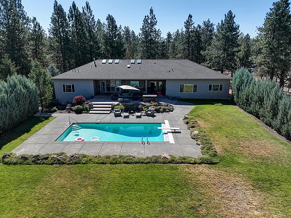 Unique small acreage in beautiful Sisters with custom high-quality home, barn/shop, sport court, and pool. A truly extraordinary property, perfect for entertaining, relaxing, kids, & animals – the potential is nearly endless. Features: open floorplan w/ large windows, high ceilings, and quality construction throughout. Great room w/ open kitchen, dining area, living room, propane FP, & skylights. Main level primary suite w/ large walk-in, bath w/ dual vanity, steam shower, & connected office w/ half bath & exterior access. Additional 4 bedrooms including another primary suite; media room, family room, laundry room, and ample storage. Ask your agent for additional features list – lots to see, lots to love, come take a look.