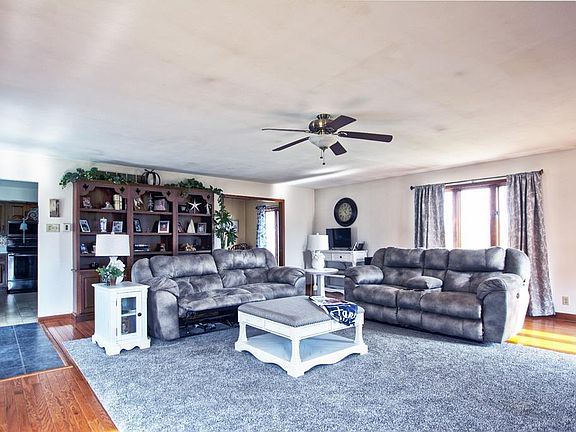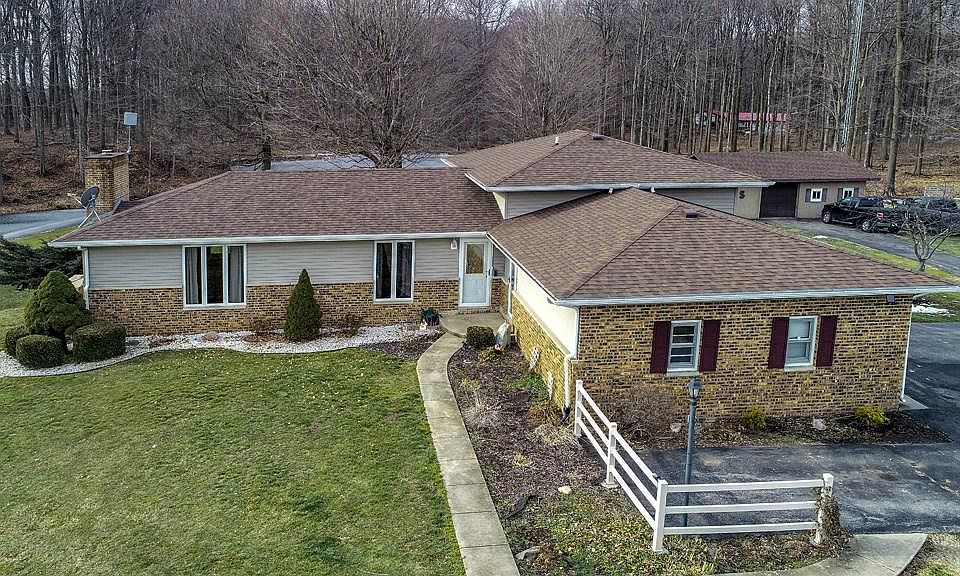 Sit back and relax at your own private 10 acre retreat with a stocked pond included. Detached garage and fishing shed on property add so many options for the hobbiest, mechanic, fisherman, hunter...you name it you can do it! Home includes 5 bedrooms, 2 1/2 baths, work shop in basement. Geothermal HVAC, fireplace, generator all featured in this spacious home in the country. You will love the beautiful hardwood floors and cozy fireplace as well as brand new kitchen appliances. There is a separate well that feeds the pond and propane tank for the fireplace and generator.