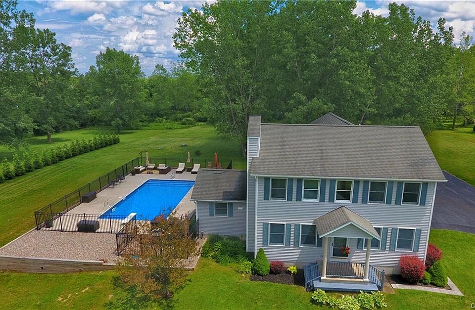 Welcome to the neighborhood! Perched on top of a hill looking over the country side, this home offers great sunset views while sitting poolside. This spacious home has a first floor bedroom suite, along with 3 more bedrooms on the second story including a large master suite with a nice size sitting area. The updated kitchen opens up to a comfortable living room and informal dining area. The sliding glass doors off of the living room walk out to a private patio and sprawling pool area. The custom built heated pool has steps the width of the pool for a great look and easy access. Don't miss this opportunity to be in a great neighborhood and Skaneateles School District.