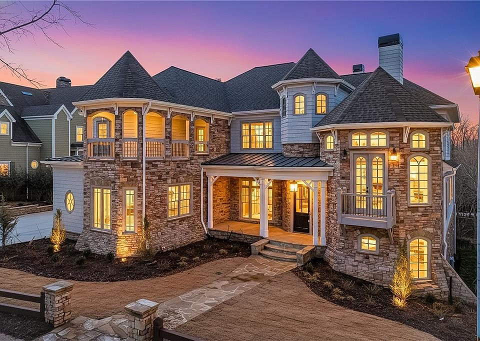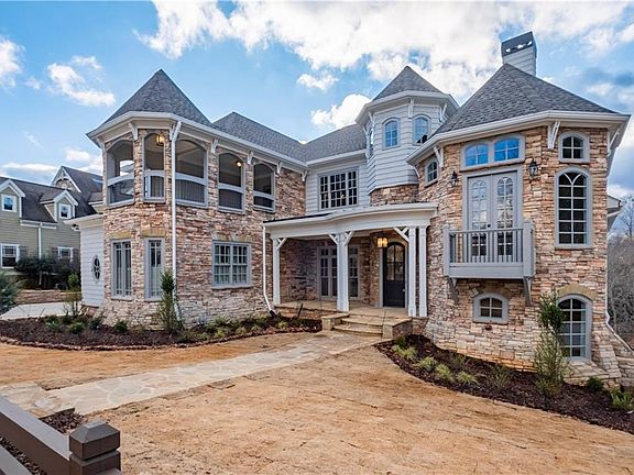 Welcome to this extraordinary, newly renovated luxury home where timeless elegance meets modern sophistication. Soaring ceilings, custom millwork, floor-to-ceiling windows, designer lighting, and six gas fireplaces create an awe-inspiring ambiance. Spanning three finished levels, the home features an elevator, a main-level primary suite, four secondary ensuite bedrooms upstairs, and one on the terrace level—perfect for guests or multi-generational living. The primary suite is a private retreat with fireplace, sitting area, heated bathroom floors, soaking tub, bidet, double sinks, glass shower, and a multi-level custom closet with laundry and flex space. The chef’s kitchen boasts state-of-the-art appliances, Taj Mahal quartzite island, soapstone countertops, Zellige tile backsplash, hidden coffee nook with pot filler, double refrigerators, and four ovens. A prep kitchen, large pantry, and open views to the casual dining area, family room, and two-story double-sided oak fireplace enhance the main level. Additional spaces include a wet bar, homework/command center, formal dining room, library with stone fireplace, and office with balcony. Upstairs, four spacious ensuite bedrooms accompany a media room, sitting area, and stunning laundry room with dual washers/dryers and pet wash station. The terrace level offers a family-friendly game area with snack bar and home theater, plus an adult space with fireplace, whiskey/wine room, and private guest suite with coffee and wine bar. Recent upgrades include a new roof, four new HVAC units, driveway, upper deck, and patio. A dedicated boat slip (D52) is included. Located in the exclusive Marina Bay community with top-tier Lake Lanier amenities—tennis, pickleball, pool, clubhouse, fitness center, parks, playground, and shaded sidewalks—this home offers the life you’ve always imagined.
