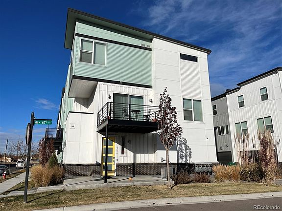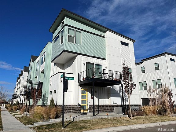 Amazing new townhome for lease! This 3 BD, 2.5 BA, 1877 SF three level townhouse on a corner lot features an open and spacious floor plan, vaulted ceilings, and lots of natural light! First floor features welcoming front entry foyer and all laminate flooring, half bath with quartz countertop and under-mounted sink vanity and soft close cabinets, huge storage closet, and access to the oversized two car garage with plenty of storage space! Second floor is perfect for entertaining with a completely open kitchen, living room, and dining room with all laminate flooring and large windows! Kitchen features center island with under-mounted sink, quartz countertops, tall gourmet soft close cabinets, tile backsplash, and stainless steel appliances. Adjacent to the kitchen is a large sliding glass door, opening up to the spacious balcony, a great place to enjoy the outdoors at home. Third floor features all three bedrooms, laundry closet, and soft carpeting throughout! The primary bedroom features large windows with beautiful views of the mountains, large walk in closet, and en suite primary bath complete with tile floor, double vanity with under-mounted sinks and soft close cabinets, quartz countertop, and huge walk in shower with tiled floor and walls, sliding glass door, and bench. The second and third bedrooms feature large closets and windows. The full second bath features tile floor, under-mounted sink vanity with soft close cabinets, quartz countertop, and tub shower with tiled wall. Unique amenities include electronic front door lock, video doorbell, and smart hub panel. A great opportunity to live in the wonderful Midtown at Clear Creek neighborhood, featuring Bruz Beers brewery, community garden and clubhouse, parks, playground, the Midtown Montessori Academy, and the Trailside K-8 school! Easy access to the Clear Creek bike path and RTD commuter rail, and just minutes from downtown Denver! You will love this home!