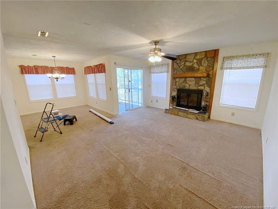 Located on the first floor, this beautiful property is CLOSE TO FT BRAGG AND SHOPPING MALLS. It has 3 bedrooms and 2 full baths with the Master bedroom having private toilet and bath. Enjoy your early mornings and evenings on the back balcony that has stunning wooded views and overlooks a valley and creek! It has open floor plan, cozy living area with fireplace and a laundry in the unit with connections for your Washer and Dryer (Unit does not come with Washer and dryer already installed. Bring your own). It also has 3 extra storage units inside. Access to community pool and tennis courts.