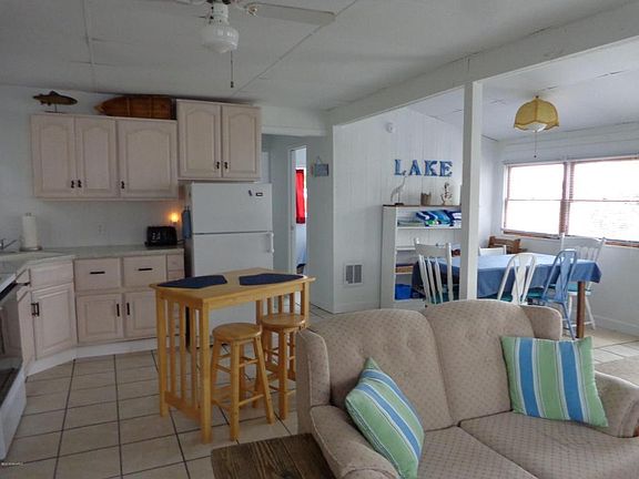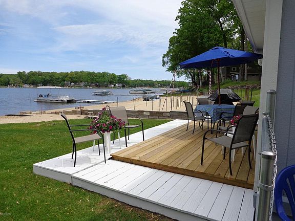 Affordable cottages with 40 of incredible sandy beach frontage on Big Crooked Lake. No steps to the water and no seawall! Two private cottages. The cottage closest to the water offers an open living area with beautiful lake views and a fabulous lake side deck. The interior is all cedar. A convenient deck walkway takes you to the back cottage. It, too, has an open living, dining, and kitchen area. All remodeled. Three bedrooms, a full bath and 792 sf. There are endless options for this unique property. A mother-in law suite. Wonderful for grandparents in the front cottage with the kids and grandchildren in the back cottage. Or, two special family/friends with a shared beach. Also, great income for rental units. Terrific location with restaurants and new breweries just up the street.Bedrooms, bathrooms, and square footage reflected are a combination of both cottages. Big Crooked Lake is an all sport lake in the resort area of Sister Lakes, Michigan. Local produce stands, breweries, wine tours, and great golf courses are all just around the corner. Winter enjoyment, too, with miles of snowmobile trails and ice fishing. Sister Lakes is less than two hours from Chicago and just over 30 minutes from Notre Dame.