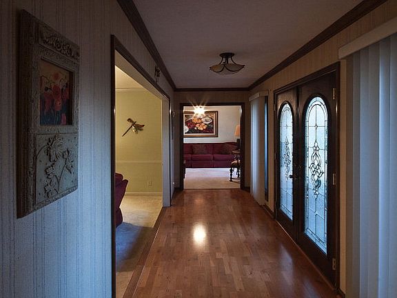 Enter the entryway & find yourself in the sunken great room w/tray ceilings & built-in wall units that flank the gas fireplace. Go through the formal DR w/pergo flooring & then to the kitchen where you will find granite counter tops with a beautiful glass backsplash & an eat in breakfast area. Features hardwood floors through out w/carpet in the bedrooms. Master BR suite features a walk in closet, sunken jacuzzi tub and separate shower. Fenced in backyard with pear trees, peach trees and garden.