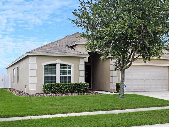 Your new Vinoy II model Inland Home residence awaits you.This oversized 4 bedroom split floor plan welcomes you with a grand foyer entrance. With over 2000 square feet home you can enjoy separate living and dining areas overlooking beautiful conservation. The open living room gives you a fantastic view of the large fenced back yard with easy access to the spacious lanai through sliding glass doors. This area is great for entertaining in any weather. Just off the living room are 2 guest bedrooms which share a full bath. The expansive kitchen includes a center island, updated cabinets, granite counter tops, breakfast nook and a closet pantry. The romantic master bedroom is complete with his and her walk-in closets, dual sinks, garden tub, and a large glass shower. Other features include security and sprinkler systems, lush landscaping with two fantastic oak trees! Inland Homes features many "GREEN" building features like Low E windows, radiant barrier sheathing, programable thermostat, Bora treated wood as an extra termite protection. Oak Creek offers a spectacular community pool, playground, walking and jogging trails, dog park, recreation area, sports courts, and picnic area. Close to your new home you'll find Wire grass Mall, Premium Outlets, the Grove Mall, movie theater, and variety of restaurants with access to I-75/I-275 and downtown Tampa, Zephyrhills, and Dade City. Call today to see this amazing home as it will not last long! LOW HOA Fees . Taxes include CDD.