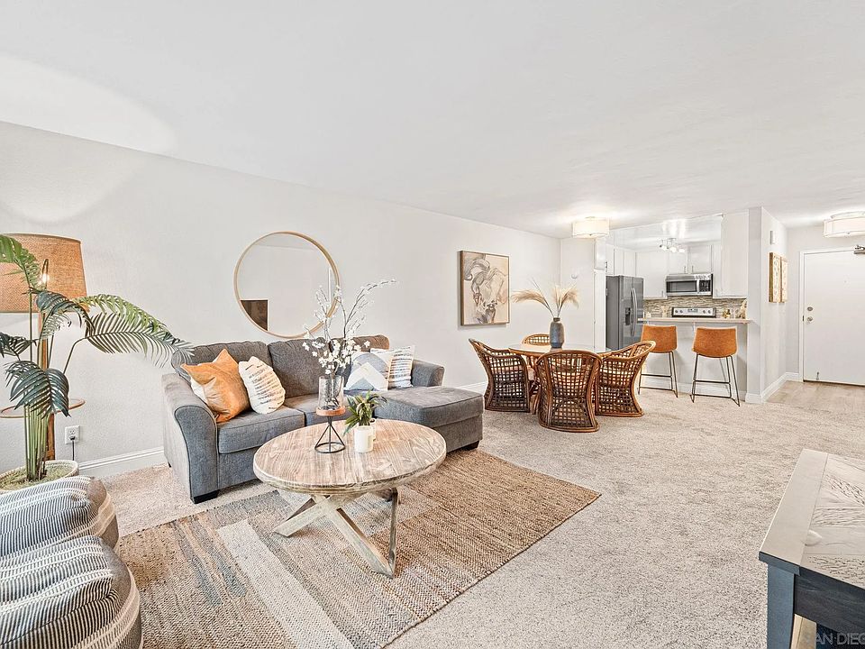 Nestled in the heart of desirable Mission Valley in Mission Greens complex, this beautiful 1-bedroom, 1.5-bathroom residence spans 882 square feet, one of the largest floorplans in the complex. The well-appointed kitchen boasts stainless steel appliances and beautiful backsplash; and the bedroom is a tranquil retreat, featuring generous closet space and large windows that invite in natural light. Step outside to your private balcony, with custom tiles, where you can savor your morning coffee or unwind in the evening while overlooking the community pool. Unit also comes with a large storage room area, 2 parking spots - 1 garage and 1 spot with a permit and in unit Washer/Dryer hookup. Located in Mission Valley, you'll enjoy the convenience of being close to shopping, dining, entertainment, and major transportation routes. Whether you're looking to explore the vibrant city life or relax in the comfort of your stylish home, 6757 Friars Rd #19 is the perfect address to call home. VA APPROVED.