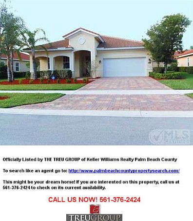 This home is a lakeside oasis, featuring a great split floor plan, upgrades that will delight including a kitchen with 42" cabinets, granite & appliances. The master retreat is a wow. You will fall in love so hurry to see it now before it is gone! If you are looking for a great home then run to see this one. You will want to bring your checkbook and your highest offer. This home has been perfectly priced so come and see it for yourself. If you do I will be able to say Welcome Home. This will be the dream come true for someone. Will it be you? You can experience your own personal oasis with this lakeside treasure. Three bedrooms and 2 bathrooms combine with a large living room, kitchen and dining room. You'll enjoy meals even more with the views seen from the dining room. The kitchen is a chef's dream with upgrades such as granite counter tops, 42" cabinets and stainless steel appliances. The master bedroom is spacious, with a walk in closet and enough room for a sitting area. The master bath will be your personal spa with it's large shower, dual sinks and separate roman tub. The split design offers two bedrooms with views of the yard. Relax on the covered front porch, back patio or venture to the community pool, where you'll find a nearby picnic and play area. This home in this tucked away community is ideally located in central Palm Beach County, so only a few minutes drive will bring you to local schools, restaurants, shopping areas, famous Florida beaches and more! With all this home offers, it's charm is sure to make it a quick sell, so call now for your personal tour! This home has been lovingly cared for so pick up the phone and see it today. Bring your best offers to make this home your new home. Brokered And Advertised By: Keller Williams Realty Palm Beach Central Listing Agent: Lisa Treu
