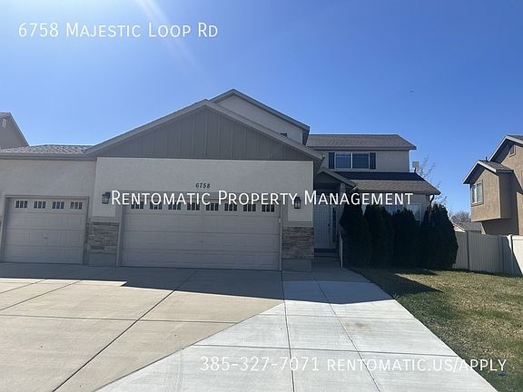6 Bed 3.5 Bath 3514 sqft Built in 2006 We are pleased to present an opportunity to acquire a spacious single-family home located at West Jordan. Constructed in 2006, this property boasts 3,514 square feet of living space, featuring six bedrooms, four bathrooms (including two master suites), and a three-car garage complemented by additional parking. A lawn care service will handle the mowing and maintenance of the lawn. Tenants will not be responsible for any lawn care or maintenance tasks. The residence is equipped with contemporary appliances and a Vivint security system, which offers the option for self-surveillance, ensuring ample space and security for your family. Situated in a sought-after neighborhood in West Jordan, it provides an ideal combination of comfort and accessibility Backyard : Fully Fenced Basement : Finished Utility : Tenant will be responsible for Water, Gas, and Electricity Additional Information: Lease Term: 12, 18+ months Available: 08/1/2025 Rent: $3,099 month Security Deposit: Refundable $3,099 Smoking: No Pet Deposit: $300/pet Pet Fee: $50/pet/month Non-refundable Application Fee: $45/Adult Lease Initiation Fee: $299 Utilities: Tenant responsible for all utilities Schedule a viewing: Contact us if you have any questions: NOTE :- Rentomatic Property Management does not accept cash, Zelle, Cash App, Venmo or gift cards as a form of payment. If you have found a listing accepting these forms of payment it is a scam/fraudulent listing, even if the person claims to be the property owner. Please do not give these individuals money and report them and their listing as soon as possible.